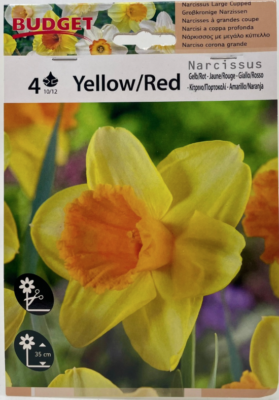 نرجس أصفر وأحمر زهرة ربيعية مبهجة تجمع بين ألوان دافئة من الأصفر والبرتقالي المائل للأحمر، لتمنح الحديقة مظهرًا مشرقًا وحيويًا. تُزهر في أوائل الربيع وتُعد من النباتات المعمرة سهلة الزراعة والعناية.